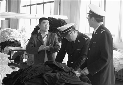 图为海关关员在外贸企业山东鲁瑞针织服饰有限公司了解服务需求。 (王菲 摄)