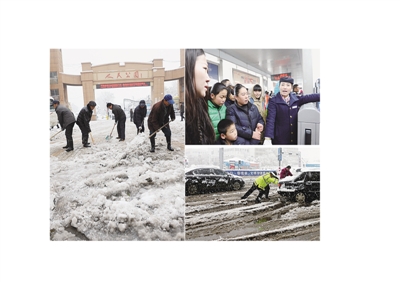 11月24日,我市迎来今冬首场暴雪,大量积雪结冰,致使道路通行能力严重下降。受强冷空气和大雪影响,昨日我市最低温度达到-9℃,为保障市民出行安全,公安、交通等部门和广大市民积极行动起来,上路清扫积雪、疏导交通、开展温馨服务,最大限度地保障道路安全畅通。 (记者 张晶 摄)