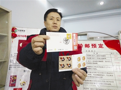 5日早晨,市中区张先生在振兴路集邮中心门前排了13个小时队之后,终于拿到了《丙申年》猴票。他也是我市第一位拿到猴票的邮迷。《丙申年》特种邮票1套2枚,全套面值为2.40元,是中国邮政发行的第四轮生肖邮票的开篇之作。 (记者 邵士营 摄)