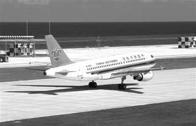 1月6日10时21分,南方航空的飞机降落南沙永暑礁新建机场。当日,中国政府征用的两架民航客机先后从海口美兰机场起飞,经过近2小时的飞行平稳降落永暑礁新建机场并于当日下午返回海口,试飞成功。永暑礁新建机场位于我国南沙永暑礁上,是我国目前最南端的一座机场。 (新华社记者 査春明 摄)