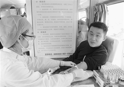 近期,受气温下降等因素影响,我市血源供应紧张,市公安局了解情况后积极开展了以“无偿献血 回报社会”为主题的无偿献血活动,广大民警踊跃参与。图为民警正在采血车内献血。