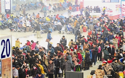 1月19日,旅客在石家庄火车站排队检票进站。2016年全国铁路春运将于1月24日拉开帷幕。春运期间,全国旅客发送量预计超过29.1亿人次。 (新华社记者 朱旭东 摄)