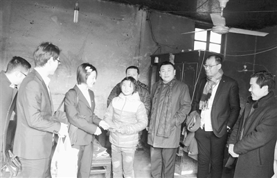 春节即将来临,薛城区陶庄镇妇联充分发挥组织优势,积极开展系列关爱贫困家庭及留守儿童活动。图为1月15日,枣庄万达广场投资有限公司一行6人到困难家庭董蕊家慰问,为其送去了衣服、生活用品及600元现金。 (甄再斌 摄)