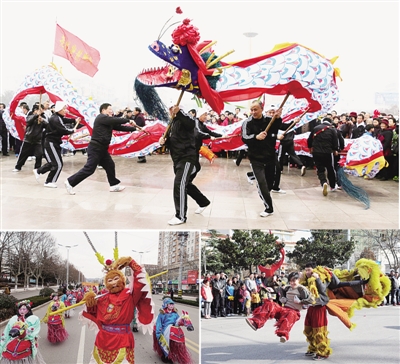 新春期间,我市10余支农民文艺队举行民间艺人进城“踩街”闹新春活动,上百名民间艺人齐聚一堂,为全市人民献上舞龙、舞狮、划旱船、扇子舞等具有浓郁地方特色的民俗表演,极大地丰富了群众的春节文化生活。