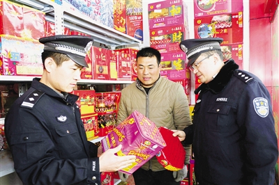 新春期间,山亭区公安分局联合安监部门深入烟花爆竹销售网点检查各项安全措施落实情况,堵塞管理漏洞,从源头上消除安全隐患,力保元宵节期间安全无事故。 (张雷 摄)