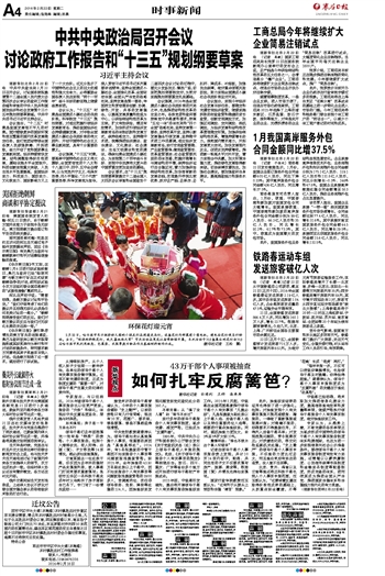 中共中央政治局召开会议 讨论政府工作报告和“十三五”规划纲要草案