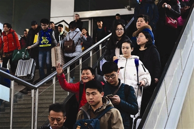当日是正月十六,受务工流和学生流相互叠加影响,济南火车站迎来节后返程高峰,预计发送旅客7.9万人,抵达旅客6.6万人。 (新华社记者 郭绪雷 摄)
