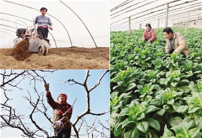 雨水节气前后,万物开始萌动。全市广大农民抓住天气晴好、气温回升的有利时机,积极开展春耕备播和果树、蔬菜管理,田野地头到处是一派繁忙景象。图①: 台儿庄区泥沟镇汪庄村农民在为播种的马铃薯覆土。图②:山亭区水泉镇柴山前村农民在修剪果树。图③:峄城区吴林街道前土河居的菜农在温室大棚内管理蔬菜。 (张晶 李宗宪 刘凤琦 摄)