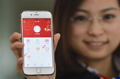 2月25日,中国工商银行湖北省保康县支行的工作人员在展示手机银行。