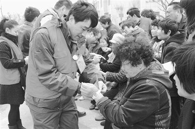 近日,薛城团区委组织开展了“邻里守望·让爱回家”系列主题志愿服务活动,共为群众免费测量血压300余人次,免费理发25余人次,针对老年人特殊群体发放黄手环70余个,受到了社区居民的热烈欢迎。图为志愿者为社区老人佩戴黄手环。 (王硕 刘希成 摄)