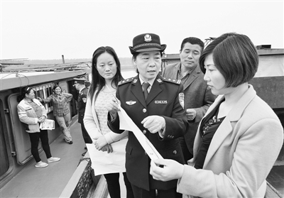 4月22日,民警向船民支招防电信诈骗常识。