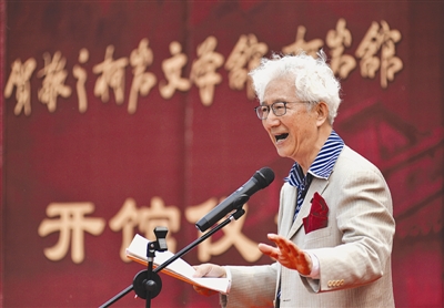 翟泰丰在讲话中说,贺敬之柯岩文学馆在台儿庄举行开馆仪式,是全国文学界的一件大事。在枣庄屹立起一座当代文学名人夫妇的文学馆,让古老的文化名城与当代文学杰作交相辉映,必将格外绚丽。