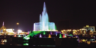 据了解,光明广场喷泉于1999年投入使用,2008年,因电路、管道等部件老化导致完全停喷。近来,为配合全市创卫,光明广场管理处对喷泉的管道、射灯、电路等进行全面更换。开喷后的喷泉最高达12米,喷泉色彩由红、绿、蓝、黄构成。伴随着优美的音乐,流光溢彩的喷泉给城市夜色增添一抹靓丽风景。 (记者 张晶 摄影报道)