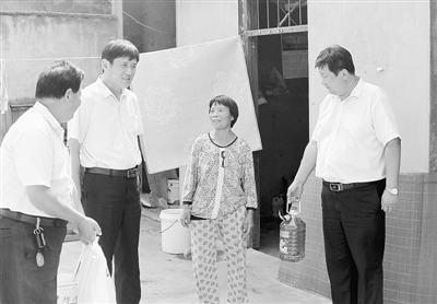9月8日,枣庄人保财险工作人员为贫困户送去节日慰问品。中秋节前夕,枣庄人保财险来到“精准扶贫”帮扶联系村峄城区古邵镇曹胡袁村,到每位贫困户家中走访慰问,并为9户结对帮扶家庭送上节日祝福和米、面、油等生活必需品。 (徐本亮 摄)
