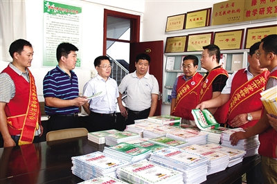 9月9日上午,学雷锋志愿者联合会滕州分会和滕州荆西书店服务队来到滕州市教育局教学研究室,赠送了1到6年级语文、数学《小学教学全解》、《小学教材全练》等700多套价值1.5万余元的教辅书,教研室工作人员将分发至全市各镇街的教研室,为老师们上课教学提供帮助。