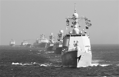 ←9月19日,中俄海军参演舰艇编队在湛江以东某海域举行海上分航仪式,中方参演舰艇官兵与俄方编队挥手告别。