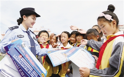 市中公安分局永安派出所把防范电信网络诈骗安全常识编成通俗易懂的“三字经”歌谣,并印制成1万多份海报,免费送给辖区企事业单位、村庄、家庭、学校等,帮助广大群众掌握防范诈骗技能。图为:民警在永安镇中心小学校讲解防诈骗常识。 (吉喆 曹新宇 摄)
