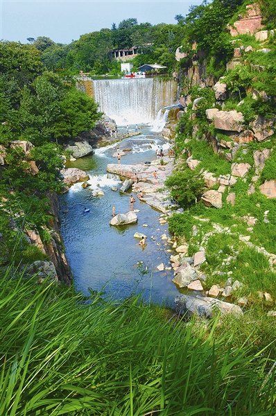 原半湖乡政府于1989年投资30万元,在河谷中建成高30米、宽25米的拦河大坝,堵截了奔腾南去的河水,从而形成了一泓碧潭,故名龙床水库。水从坝溢,飞流直下,遂成龙床瀑布景观,宛如千匹白缎悬挂山涧。景区驻地居民依山造势,依林作景建10余家农家乐为民休闲,每年接待游客数十万,每逢假日,游人如织甚是热闹。坝上水绿如蓝,如诗似画,两岸美景倒映水中,优美宁静。瀑布下水急水缓,把花岗岩形成的河床冲刷的洁净光滑,水中游鱼清晰可见。河床两岸奇石嶙峋,千姿百态,形象逼真,造型别致,(下转A2版)