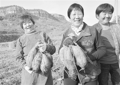 近日,山亭区徐庄镇涝岭村民在收地瓜。由于今年雨水充足,山亭区秋季农作物喜获丰收。