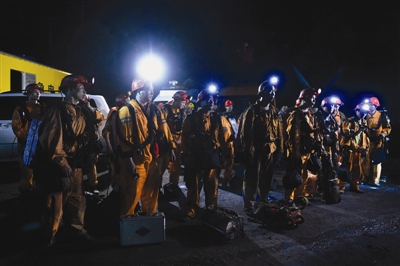 刚从矿井出来的救援人员(10月31日摄)。记者从重庆煤矿安全监察局发布的金山沟煤矿瓦斯爆炸事故紧急通报获悉,31日11时33分左右,永川区金山沟煤矿井下发生瓦斯爆炸事故,造成33人被困。截至记者发稿时,已发现15具遇难者遗体,仍有18人下落不明。 (新华社记者 唐奕 摄)