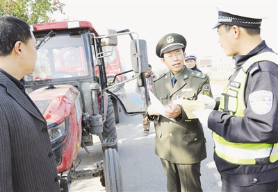 11月初至年底,市中区农机局、公安交警部门开展为期2个月的农机车辆道路交通安全整治行动,重点查处农用运输车、拖拉机的严重违法行为,积极向农机手宣传道路交通安全及农用车辆安全监督管理等相关法律法规,进一步预防农用车道路交通事故。 (记者 张晶 摄)