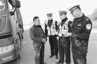 →为进一步规范整治货车各类交通违法行为,保障辖区道路交通秩序安全,日前,市公安局交巡警支队结合各辖区实际情况,组织警力在重点路道沿线设置整治岗点,对过往货运车辆进行检查。图为:市中公安分局交警在206国道检查过往货车。