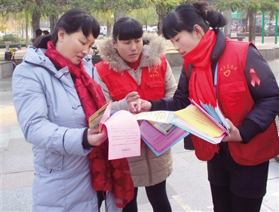 12月1日是第29个“世界艾滋病日”。为预防艾滋病,11月30日,滕州市红十字会,滕州市卫计委组织医务人员及志愿者在滕州市三角花园开展了2016年世界艾滋病日主题宣传活动,医务人员和志愿者身戴红绸带,向市民发放预防艾滋病的宣传资料,讲解预防艾滋病的知识。 (记者 侯志龙 摄)