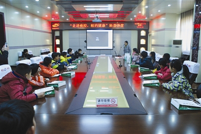 近日,市中区文化路小学六年级七班师生、家长共50余人来到市疾控中心健康教育基地,开展“走进疾控,相约健康”主题课外活动,通过开展健康知识普及和健康行为干预,推动师生健康素养整体水平提升。图为市疾控中心讲师介绍冬春季常见传染病防控等预防知识。 (李侠 赵海彬 摄)