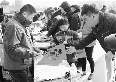 1月17日,薛城区陶庄镇邀请该区文联书法协会会员,开展文化下乡活动,为村民现场写春联。