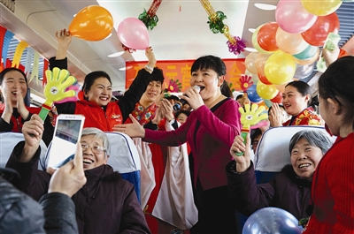 2月7日,一名演员在“列车元宵联欢会”上演唱豫剧。当日,郑州铁路局郑州客运段北京一队在北京西开往郑州的K479次列车上举办一场特殊的“列车元宵联欢会”,为乘客献上戏曲、歌舞等节目,并邀请乘客猜灯谜、做元宵,喜迎元宵节。车厢里洋溢着浓浓的节日氛围。 (新华社记者 李安 摄)