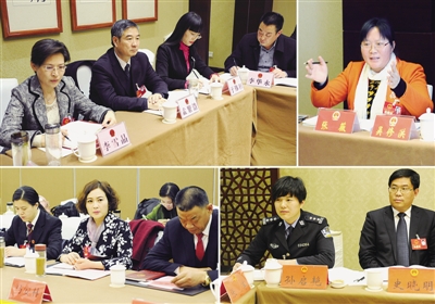 昨日,出席市十六届人大一次会议的代表分组审议市人大常委会工作报告以及“两院”工作报告。 (记者 刘品 摄)