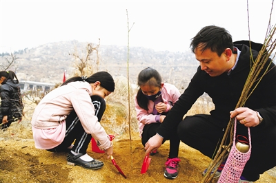 本报讯 3月12日,气温适宜,春光明媚。巍巍莲青山下,成了欢乐的海洋,成千上万的人聚集在这里义务植树。在这支植树大军中,就有一支来自枣庄日报的小记者队伍,有些家长也赶来了,和孩子一起植下绿色的希望。