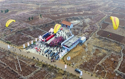 无人机航拍桃花节活动现场。 (甄宗奎 摄)