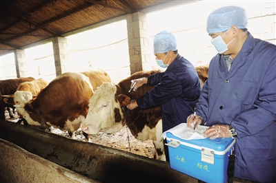 为有效预防春季动物疫情发生,连日来,峄城区组织畜牧防疫员对畜禽进行疫苗注射、建立档案,目前已为81万余羽家禽注射了禽流感疫苗,为13万只(头)家畜注射了口蹄疫疫苗,确保全区春季养殖安全。 (张晶 孙启路 摄)