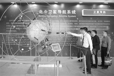 4月24日,在陕西西安西北工业大学举行的2017“中国航天日”科普宣传周上,参观者了解北斗卫星导航系统。当日是第二个“中国航天日”。 (新华社记者 刘潇 摄)