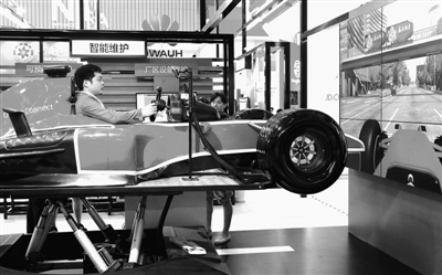 6月29日,参会者在华为展台体验车联服务模拟器。
