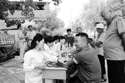8月18日,薛城区政协组织部分政协委员到陶庄镇齐湖村开展送医疗、法律服务下乡活动,村民在家门口就能测量血压、咨询相关法律问题。