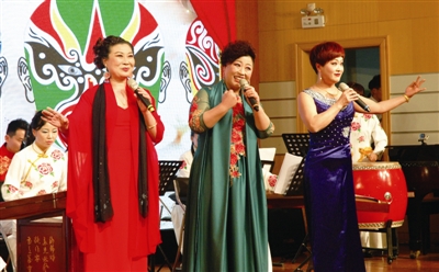 2017年12月28日,枣庄学院音乐厅内欢歌笑语,乐声飞扬。由市委宣传部主办的“柳琴戏韵”2018年新年音乐会拉开序幕。枣庄学院乐团和市艺术剧院民乐队表演了古筝独奏《夜深沉》、二胡独奏《三门峡畅想曲》等精彩曲目,赢得观众的热烈掌声。图为市柳琴戏保护传承中心三位演员在表演最新创作的柳琴戏歌《拉魂腔》。 (记者 刘明 摄)