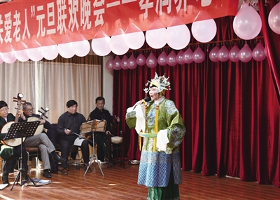 2017年12月29日,孝润养老服务中心在塔寺街社区服务中心举办了“情注夕阳关爱老人”庆元旦联欢会,为老人和居民义务演出了舞蹈、戏曲等文艺节目,受到社区居民和老年人欢迎。 (记者 侯志龙 摄)
