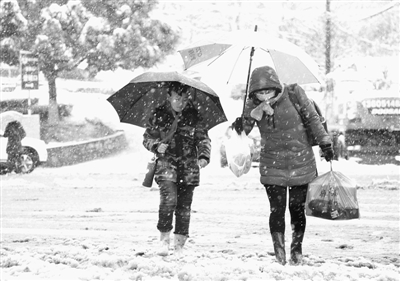 当日清晨,中央气象台继续发布暴雪橙色预警,预计,4日8时至5日8时,河南中南部、湖北中东部、湖南西北部、安徽大部、江苏大部等地有大到暴雪。另外,湖南西北部、贵州东北部局地有冻雨。 (新华社发)