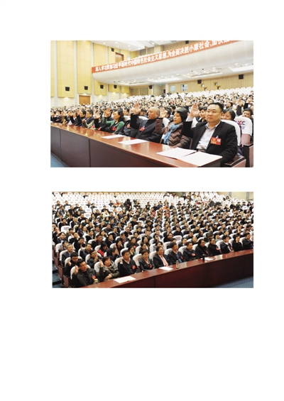 1月7日上午,参加市政协十届二次会议的委员举手表决通过各项决议,大会圆满闭幕。(记者 张晶 摄)