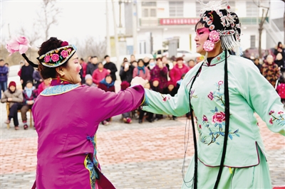 进入农历腊月,山亭区结合“四德”模范表彰、春节系列文化活动等广泛开展“送戏下乡”活动,将舞台搭到农民家门口,让村民在冬闲时节尽享“文化大餐”。 (刘明祥 摄)