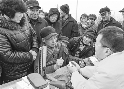 1月22日,民进淄博市委组织志愿者到山亭区水泉镇下辛庄村开展“迎新春送健康”义诊活动,为该村留守老人提供免费体检、健康咨询、医疗保健等服务,并赠送了部分药品。 (孙晋猛 摄)