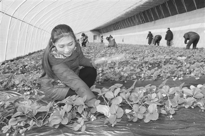 眼下正是冬草莓上市时节,山亭区草莓生态种植园里温暖如春,颗颗草莓香气扑鼻,引得游客争相采摘。 (杨和山 摄)
