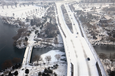 图①:市中区文化西路雪景。 (吉喆 摄)