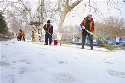 1月27日,我市普降瑞雪,银装素裹的城市、乡村,景色妖娆。雪后,我市交通、环卫等部门迅速行动,加大道路积雪清理力度,保障市民出行安全。