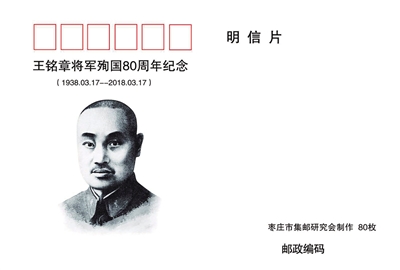 3月17日是王铭章将军殉国80周年纪念日,为铭记王铭章将军的不朽功绩、进一步弘扬爱国主义精神,滕州邮政公司特出品了抗战纪念邮品,并向远道而来的40余名抗战烈士后代、随行退役军人和志愿者,赠送了滕县保卫战80周年纪念封和王铭章将军殉国80周年纪念片。