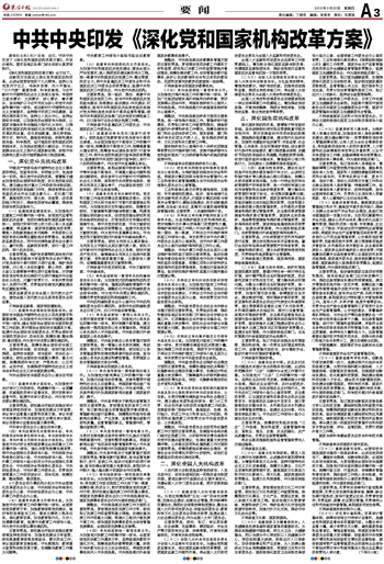 中共中央印发《深化党和国家机构改革方案》