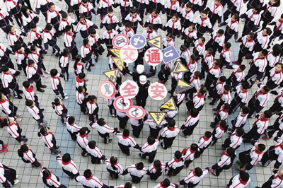 3月26日,交警和学生一起做游戏,普及交通安全知识。当日是第23个“全国中小学生安全教育日”,市中公安分局组织多警种联合走进辖区内的建设路小学,开展“平安校园伴我行”主题教育活动,对学生进行安全知识教育。 (吉喆 贾方勇 摄)