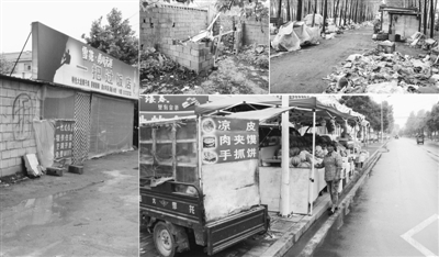 图④:山亭区淮海路与新源路交叉口处水果商贩占道经营。